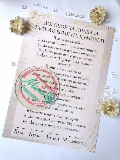 Договор с нотка забавление, но и обещание за бъдещи взаимоотношения. Време е за тост сега и за подписване на договора.