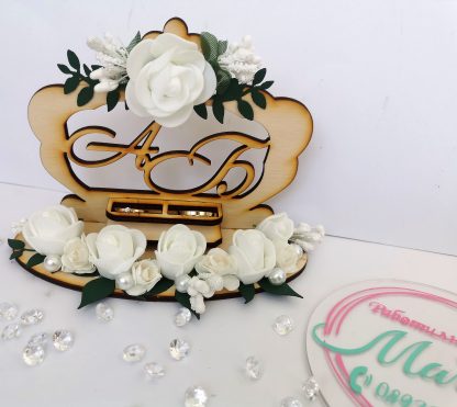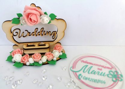 Красива поставка за годежни пръстени. Специален ден и много емоции. Спомените не избледняват, а стават все по-приказни. Нашата дървена поставка е създадена с много любов. Нежна, приказна и вълшебна. Малките неща са изключително важни за вашия сватбен ден. Тази поставка е перфектния завършек на това красиво събитие. Скъп спомен, носещ безброй усмивки. За един ден, изпълнен с любов и щастие.