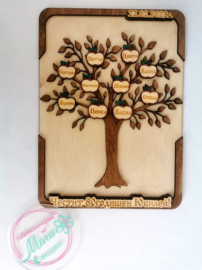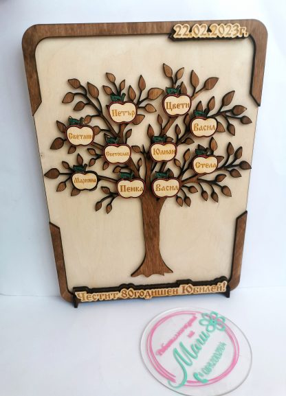 Семейно дърво за един прекрасен юбилей. Семейството е най-ценно! Семейството е всичко. Корените ни чертаят живота ни. Това не е просто подарък! Това е любов. Подарете емоция, щастие и сълзи от радост. Още дълги години здраве и късмет.