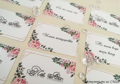 Правила: Размешвате картите и всеки тегли подред карта. Ако написаното върху картата е вярно за него, той пие (Вариант 1).