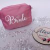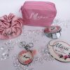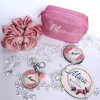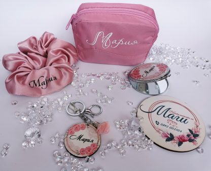 Комплект за моминското💐 Оригинален подарък, който ще се ползва с усмивка. Кокетен несесер за булката💐 или пък подарък за момичетата на най-щурото моминско парти! Огледалце, ключодържател и скрънчи с персонализация. Подарете незабравима емоция, гарнирана с нотка кокетност и стил. Различно, бонбонено предложение за отбора на булката💐💗🌷