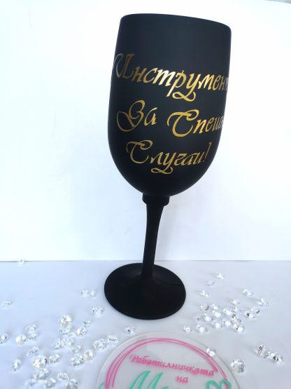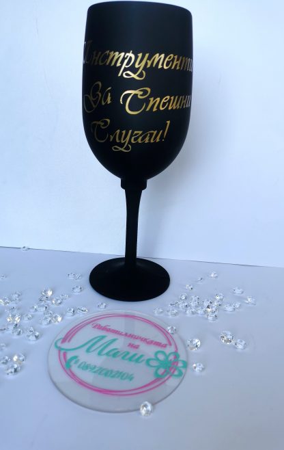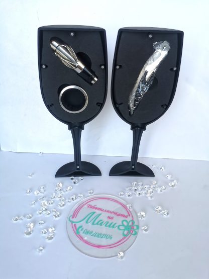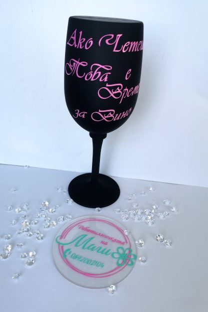 Още едно нестандартно предложение за любителите на вино! Страхотен сет – чаша! Аксесоари, които са просто необходимост. Забавно, различно и с нотка хумор. Текста е по Ваш избор. Зарадвайте своите близки с подарък, който ще предизвика усмивки. Все пак няма нищо по-хубаво от чаша студено вино в гореща нощ, нали? Наздраве!