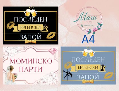 Табели за едно забавно парти! Моминските партита трябва да бъдат забавни. Създадохме тези табели, за да вдигнем градуса на настроението. Превърнете ноща в нещо лудо и се насладете на всеки миг. Забавно, различно и ефектно. Табели, които ще бележат началото на купона. Малките детайли, които ни карат да се усмихнем.